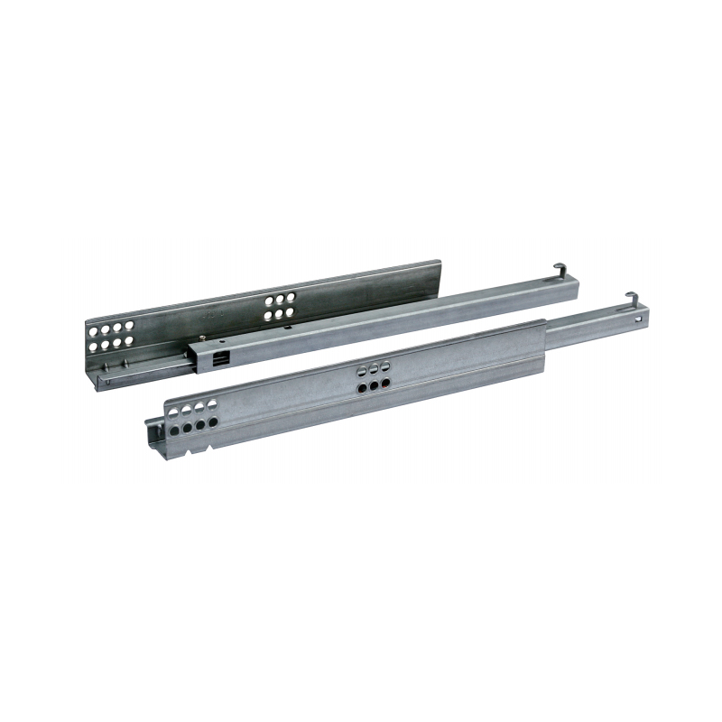 產(chǎn)品名稱:隱藏式內(nèi)置阻尼二節(jié)滑軌 適用范圍:各類抽屜 主要材質(zhì):冷軋鋼板 最大承重:25KG 主要功能:半拉伸,內(nèi)置阻尼裝置和自閉裝置 主要特點(diǎn):配有抽屜背板卡件
