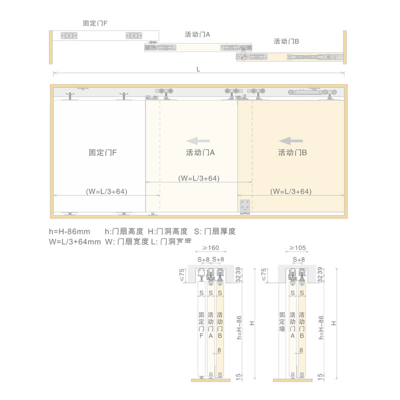 適用范圍:適用于同步同向開啟雙扇推拉門