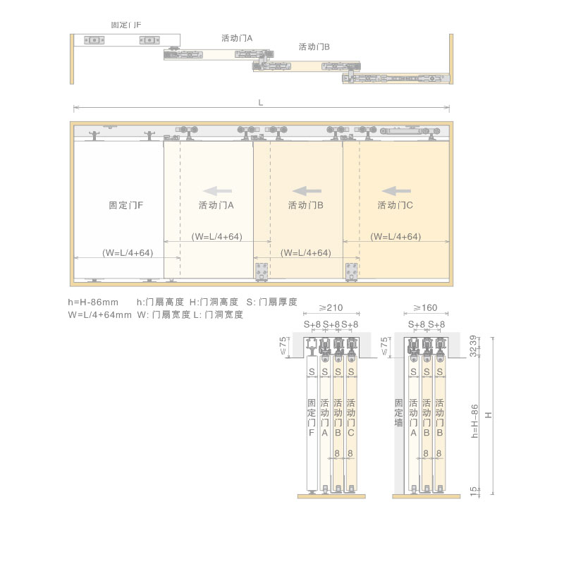功能描述:通過把聯(lián)動門扇推拉到一側(cè)得到足夠大的空間,輕松拉動單扇門,助力其它2扇門開啟或關(guān)閉,輕松順滑無噪音